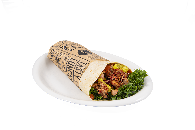 Jackfruit hedelmää grillattuna. Popin tomaattikastiketta, popin juustoa, mietoa jalapenoa, raikasta salaattia ja punasipulia sekä lopuksi viimeistely kebab -valkosipulikastikeella.